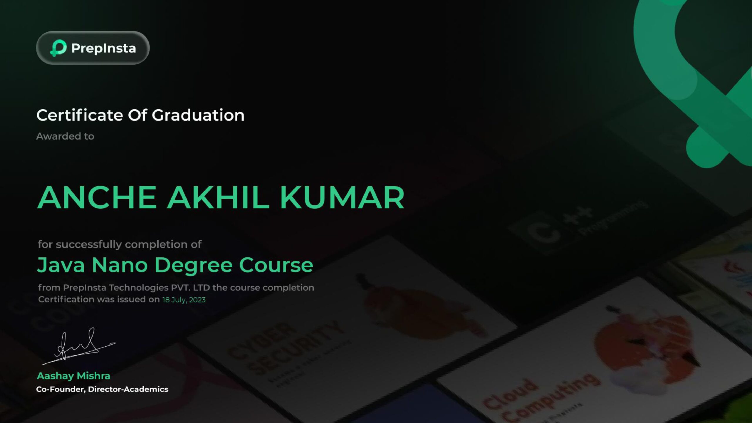 Gained a hands-on experience in Java programming, gained knowledge in OOPs principles and knowledge on how to write efficient code.
