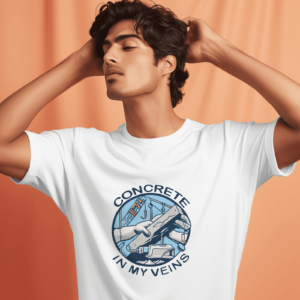 Concrete in My Veins – White Half Sleeve T-Shirt